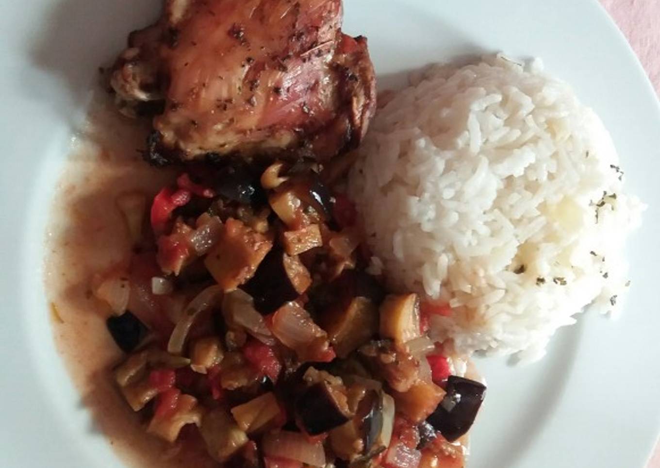 - Una vez listo el sofrito y las berenjena, mezclar todo, servir con arroz o carnes
