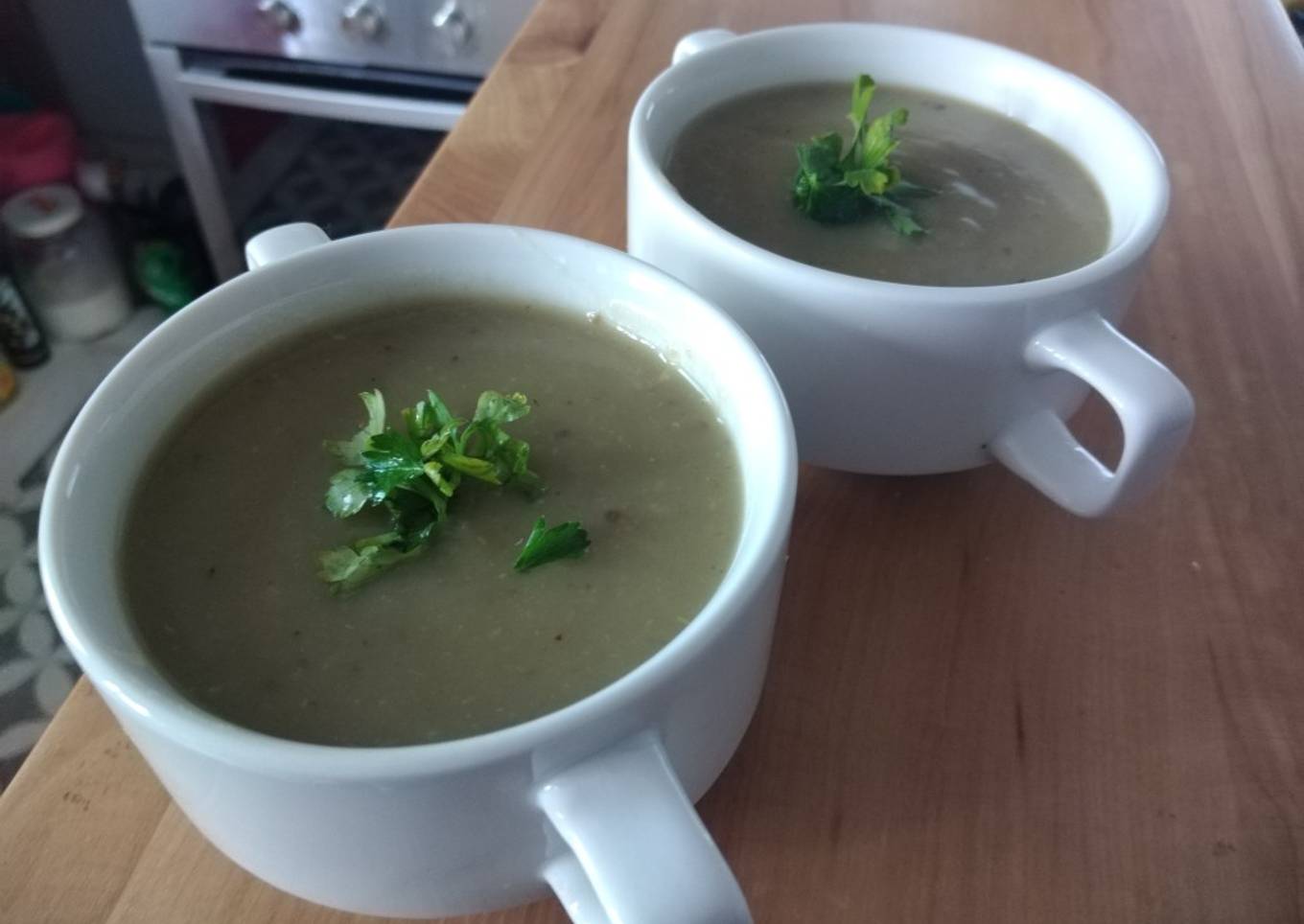 - Agregar agua recién hervida y cocinar a fuego medio tapado por 15 min. Retirar del fuego y reservar tapado unos 20 min. Luego de esto, licuar con una minipimer o licuadora hasta triturar todo, formando así la crema. Servir inmediatamente y decorar con perejil fresco recién picado.