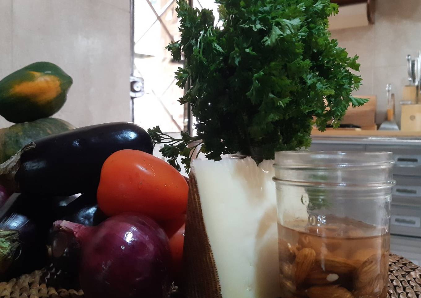 - En una batidora tritura, las berenjenas, tomate y almendras, salpimentar