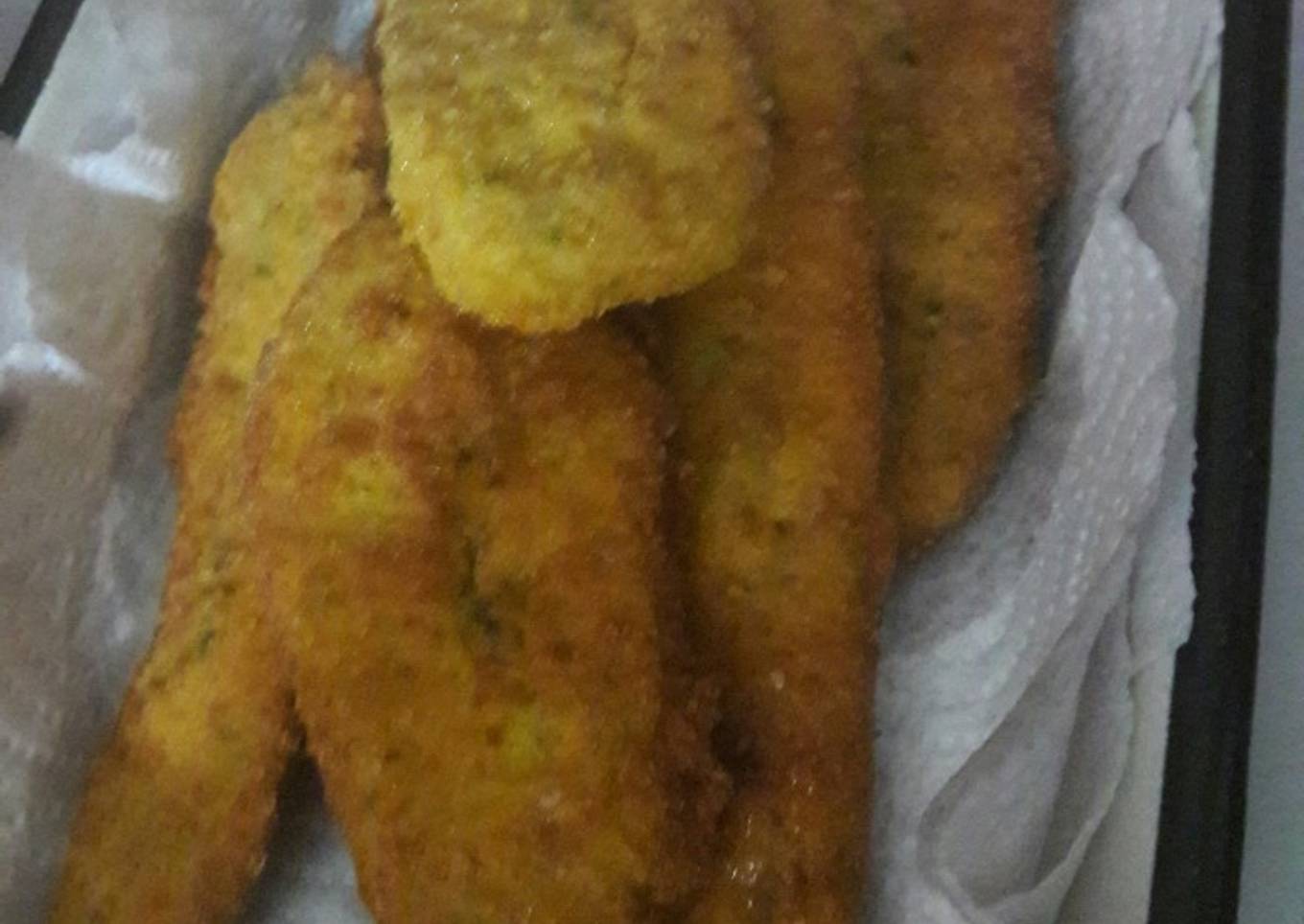 - Mezclar los huevos con la sal y los condimentos y batir bien y pasar por la mezcla y después por pan rallado todas, y es opcional, a mi gusto personal las vuelvo a pasar de nuevo por huevo y pan rallado para que no se salga el apanado pero es a gusto