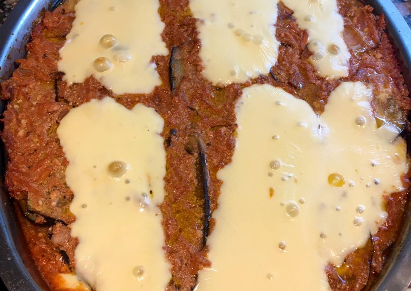 - Intercalar capas de berenjenas, el preparado y fetas de queso de máquina, luego nuevamente berenjenas, y así continuar. Al finalizar cubrir con queso por salut descremado, cubrir con papel aluminio y cocinar en horno moderado durante 20 minutos, retirar el papel aluminio y dejar dorar un poco el queso, en este paso se puede agregar parmesano rallado y gratinar