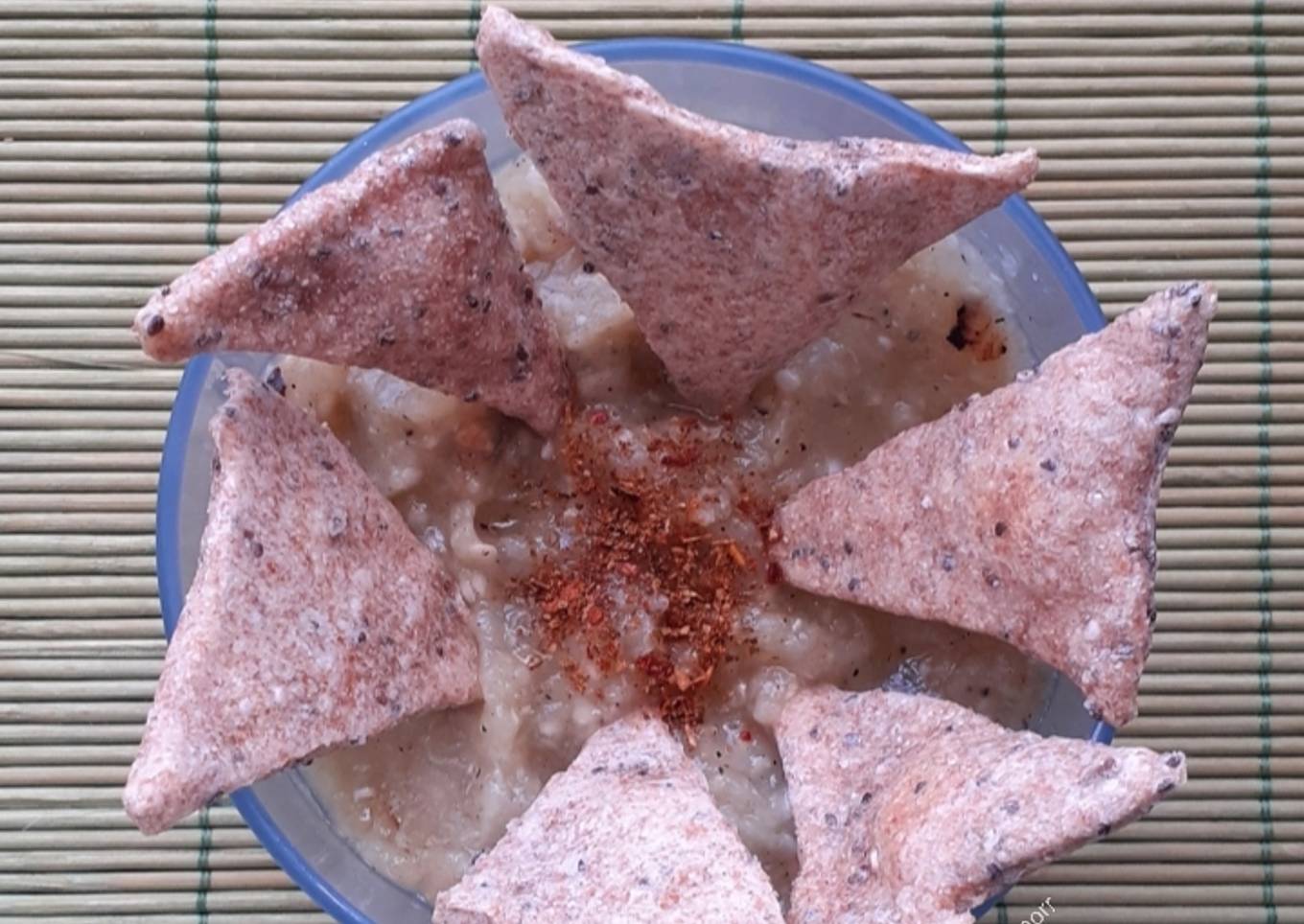 Hey everyone, hope you are having an amazing day today. Today, I'm gonna show you how to make a special dish, Nachos integrales con paté de berenjena. It is one of my favorites food recipes. This time, I am going to make it a little bit tasty. This is gonna smell and look delicious.