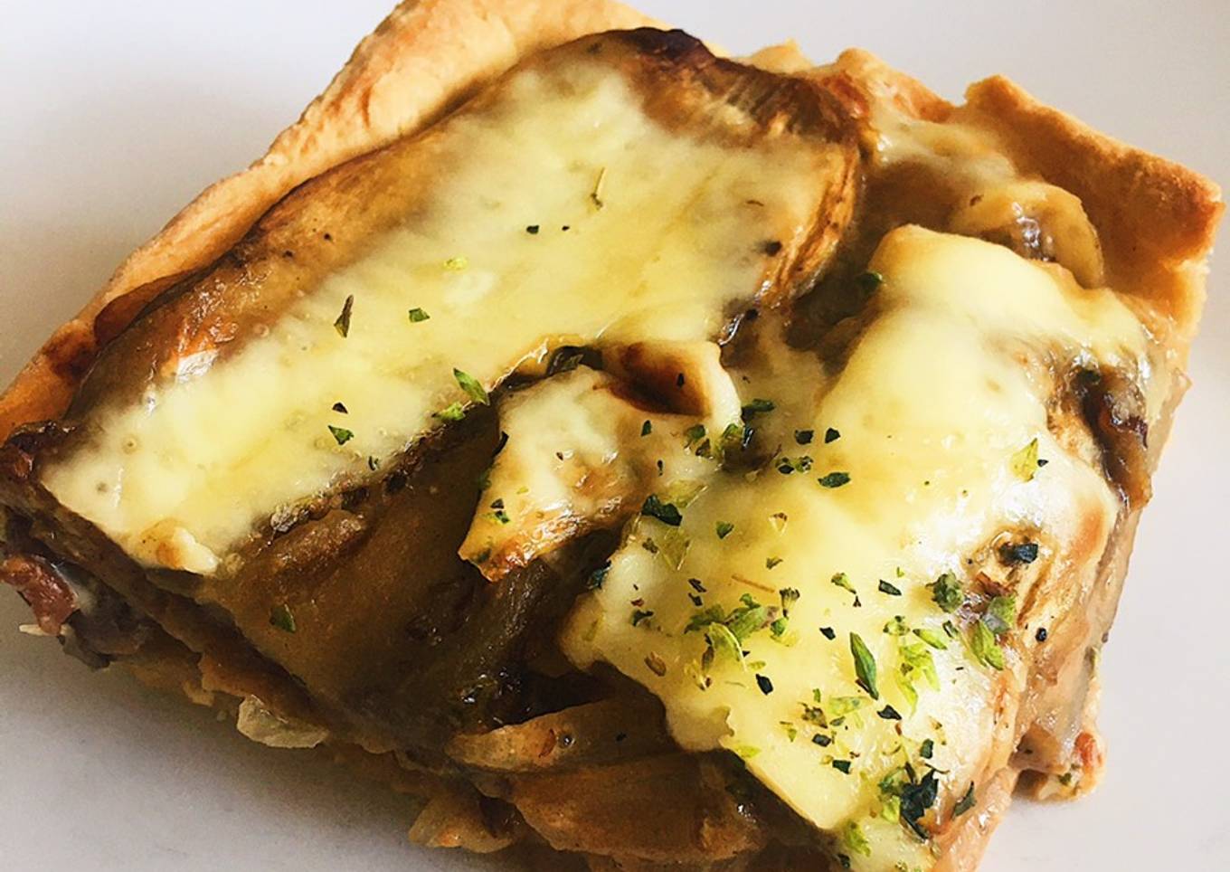 Quiche de berenjena, cebolla caramelizada y champiñón