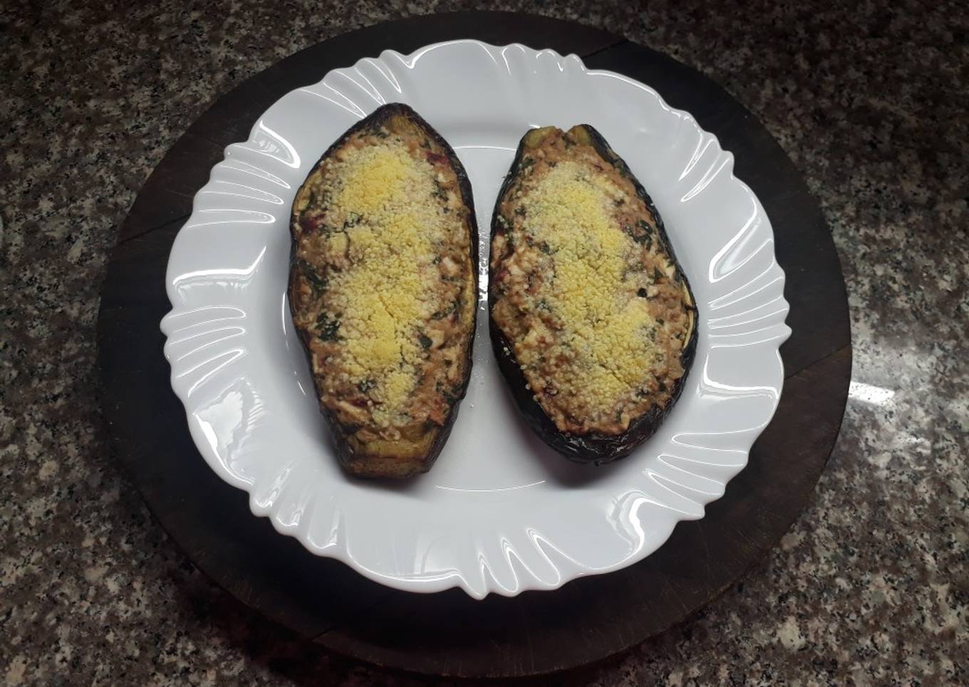 - Rellenamos las berenjenas y ponemos queso rallado a gusto por encima. Llevamos nuevamente a horno caliente 5 minutos.