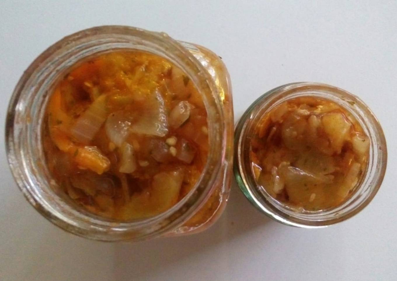 - Acomodamos las verduras en un frasco y lo llenamos de aceite. Deben quedar todas las verduras tapadas con aceite.