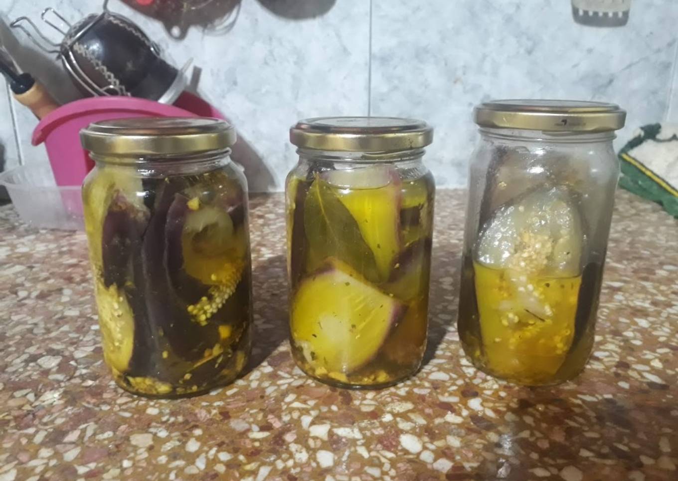 - Agarrar los frascos, acostarlos en la mano e ir colocando las berenjenas de a una intermediando con las mezcla de sabores, completar el frasco y pararlo, rellenar con aceite y tapar, dejar reposar unos días y saborearlo, pasen fotos de los suyos, saludos