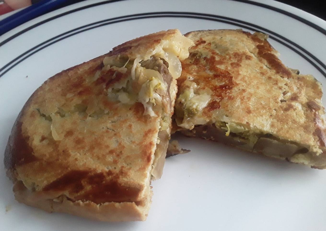 - Tapamos con la otra tajada de pan y ponemos nuestro sándwich sobre sartén caliente y dejo que dore por abajo...