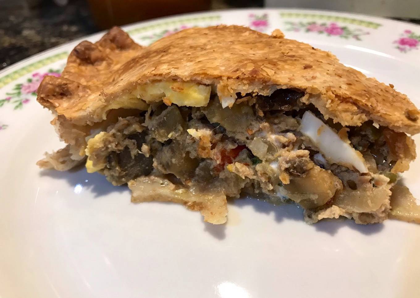 Tenía que usar las tapas de Pascualina… que tenía? … listo sale tarta, y además usamos especias para mi noche africana….. es una tarta con relleno poco compacto, pero muy rico….