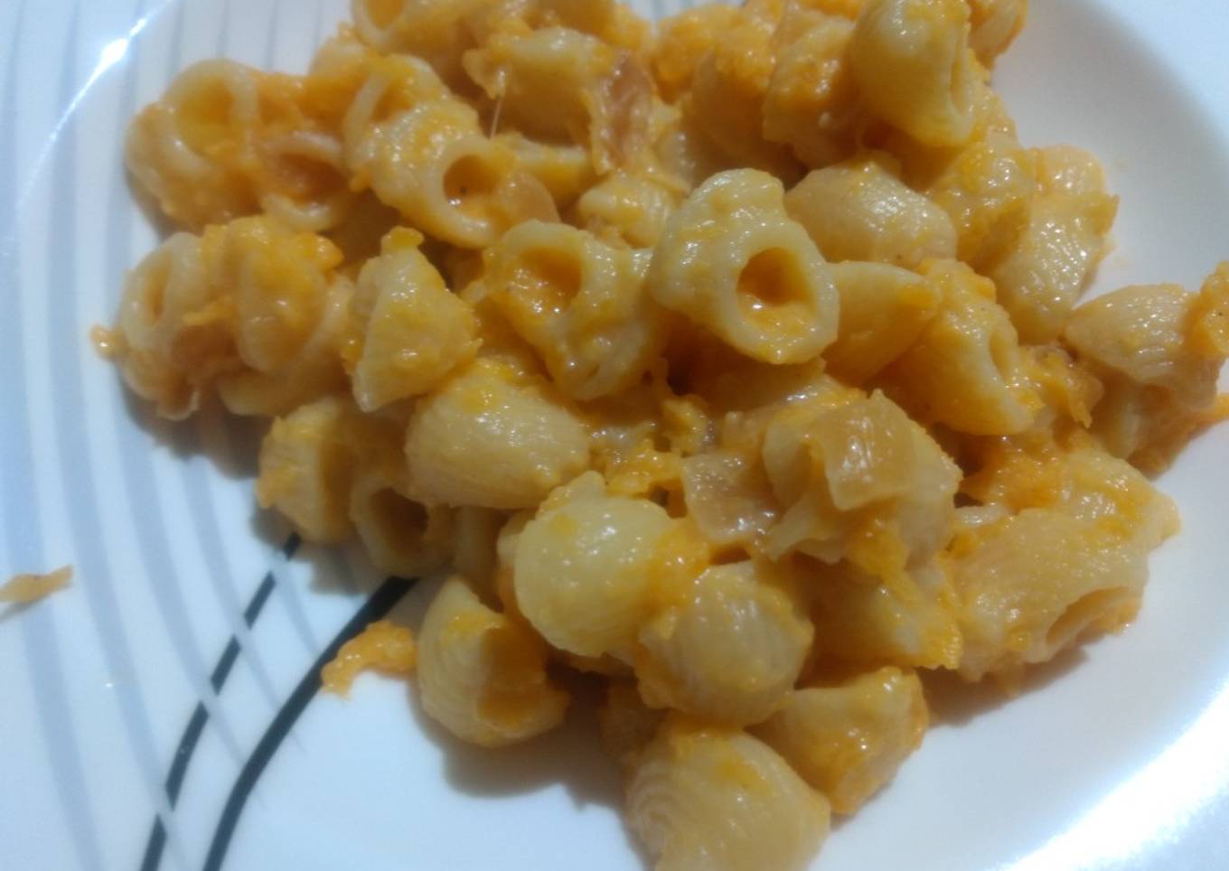 - Ponemos la sartén con la cebolla caramelizada a fuego medio y añadimos la calabaza chafada, y media tarrina de crema de queso.Removemos y añadimos un poquito de nuez moscada, volvemos a remover.