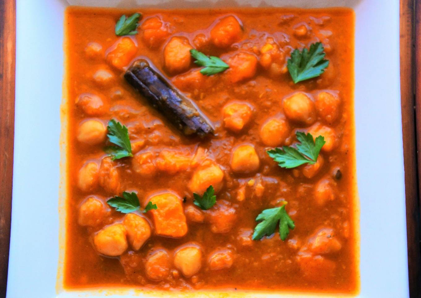 Curry de garbanzos con calabaza y boniato