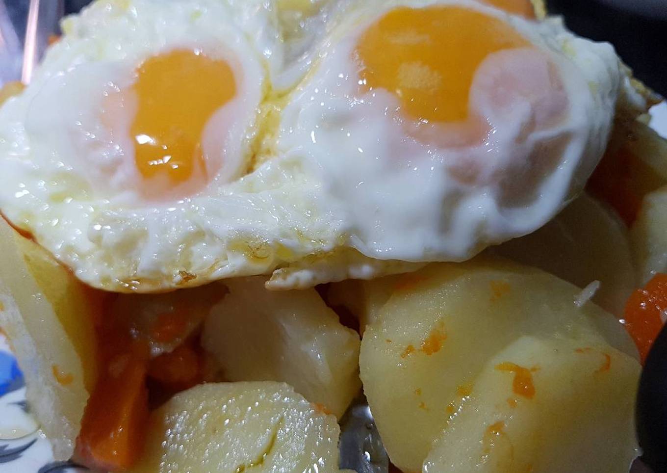 Instructions to make to make Huevos a la plancha, con Calabaza y Patatas!🥔🍳